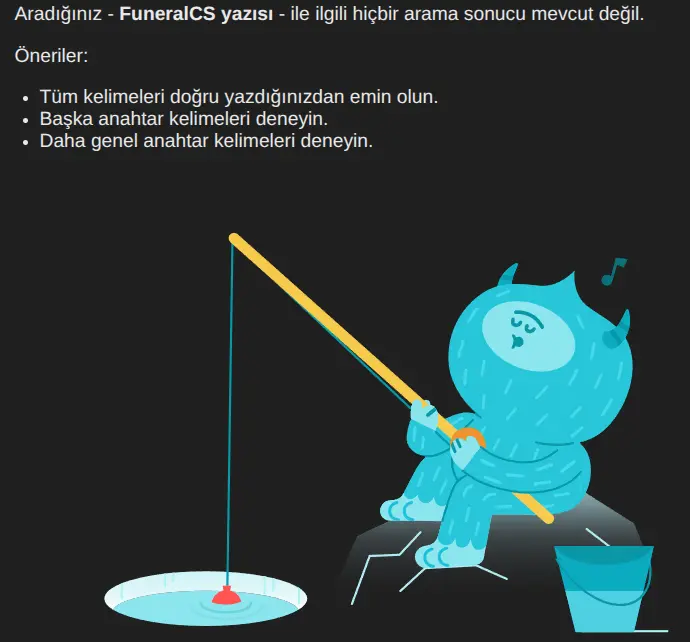 Uyarı: Bu yazı aslında o aradığınız yazı ama arattığınızda, karşınıza yine “Aradığınız ‘FuneralCS yazısı’ ile ilgili hiçbir arama sonucu mevcut değil.” çıkacak. Ve o sonuç, işte şu an okuduğunuz yazının ta kendisi; yani bulamadığınız bir şeyi okuyacaksınız…