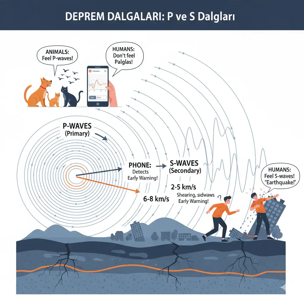 P dalgalarını hayvanlar çoğu zaman hissedebilir, insanlar ise hissedemez. Bu yüzden hayvanların depremi önceden fark ettiği düşünülür. İnsanların algılayamadığı bu titreşimleri telefonlarımız algılayabilir — adeta “cebimizdeki küçük hayvan” gibi davranarak P dalgalarını bizden önce hisseder. İşte bu birkaç saniyelik fark bile hayat kurtarıcı olabilir.