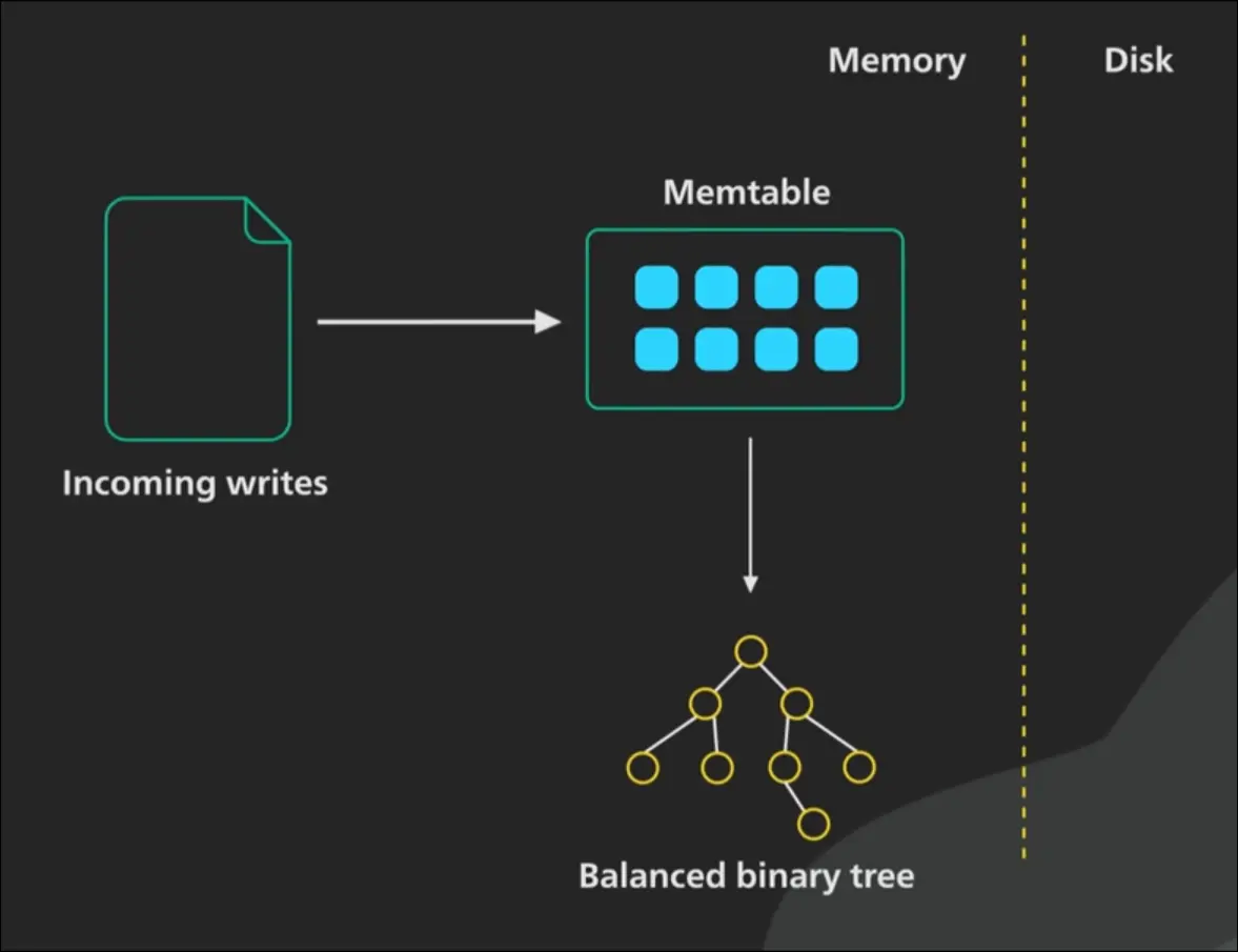 Peki RAM dolmaya başlayınca ne olur? Eğer ağaç bellekte veri tabanının belirlediği bir büyüklüğe ulaştığında, flush denilen işleme tabi tutulur. Flush, tamponda (buffer) tutulan verinin asıl işlem yerine gönderilmesi işlemidir ve veri buradan sonra Sorted String Table (SSTable) adını alır.